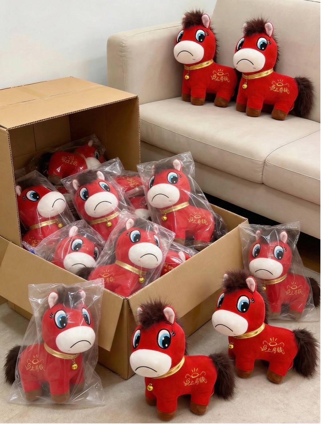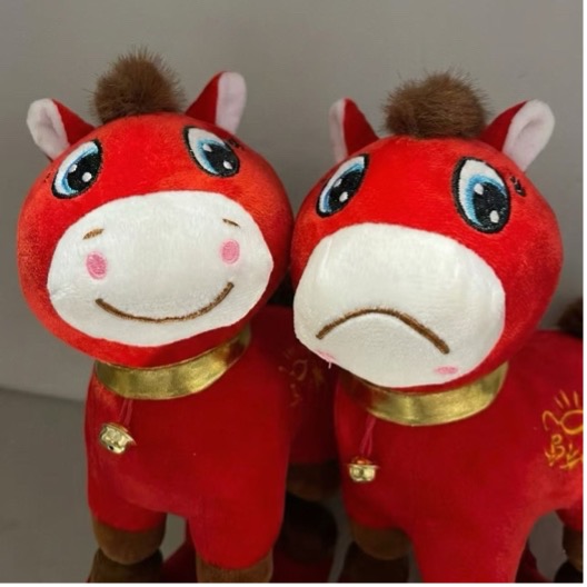 The "Crying Horse" is a red plush toy, roughly 20-30 cm tall, originally designed to convey the auspicious meaning of "instant wealth on horseback." Yet, in mid-January, a manufacturing error on a Yiwu production line resulted in the horse's mouth being sewn upside down. Instead of a protruding smile, the horse bore a sunken, concave, miserable expression. The eyes, originally designed to look docile, appeared in this context to be averting their gaze in shame or exhaustion.
